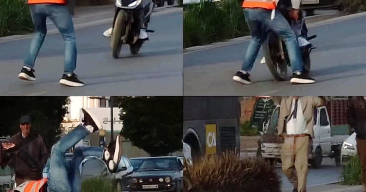 وأظهرت مشاهد متداولة للحادث، لحظة الاصطدام العنيف الذي تسبب في قذف الشرطي إلى الأعلى قبل سقوطه أرضاً بقوة، وسط صدمة المواطنين الذين عاينوا الواقعة، فيما هرعت عناصر الوقاية المدنية إلى عين المكان، حيث تم نقل المصاب إلى المستشفى لتلقي الإسعافات الضرورية.