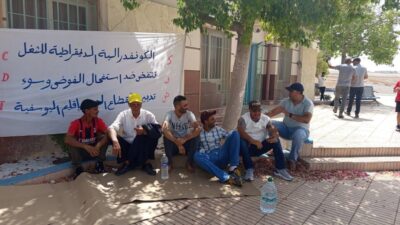 حراس أمن خاص يعتصمون بمندوبية الصحة باليوسفية احتجاجا على سرقة مناصبهم وتفويتها إلى أقارب موظفين